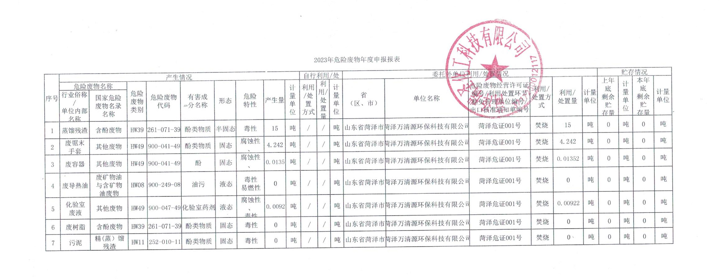 危險廢物申報報告表